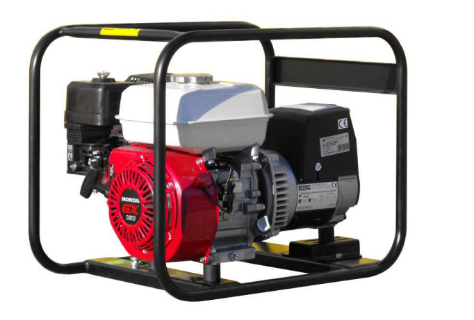 Generator curent monofazat 220V, model AGT 2501HSB cu motor HONDA GX160 5,5CP, puterea de 2,2kVA si 2 prize monofazate in echipare standard.